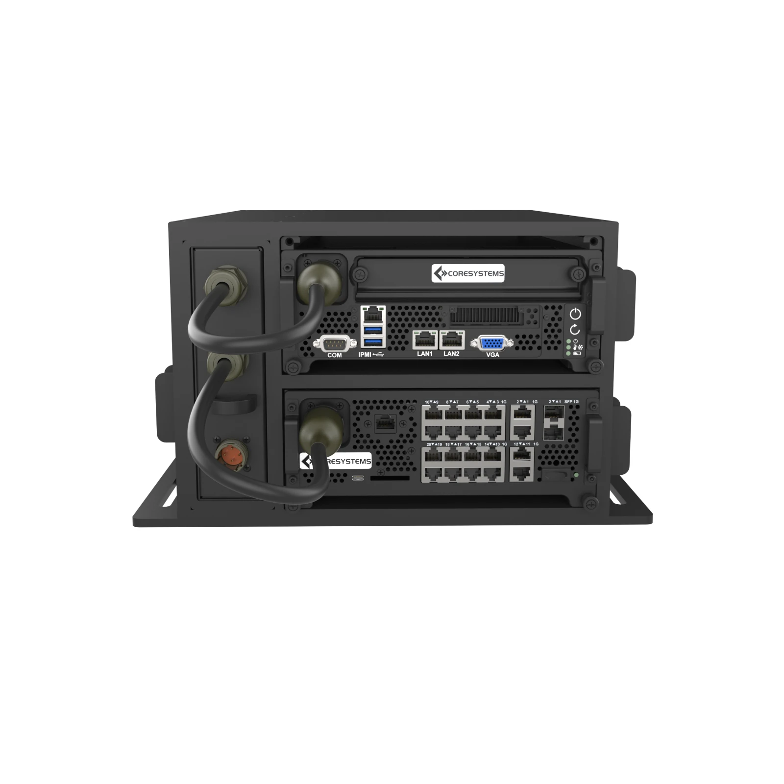 The Core Systems ATMOS SAVE Kit is a SAVE-compliant, fully integrated tactical edge solution combining an ATMOS2 GPU compute node, an ATMOS2 managed switch, and a dual-output battery power subsystem within a compact SAVE chassis. Engineered for rapid deployment, the system delivers high-performance AI processing, integrated networking, and resilient power in a single ruggedized platform.