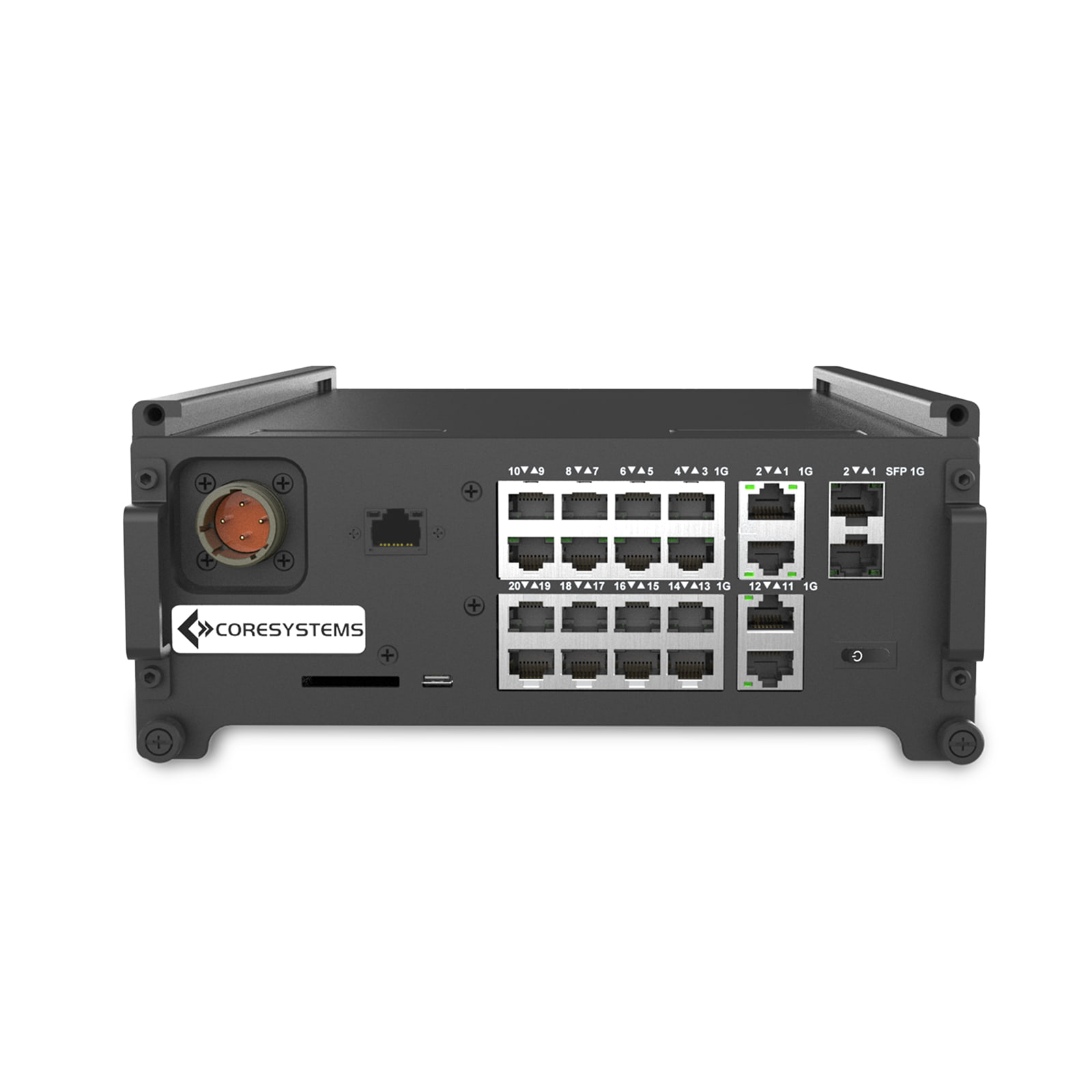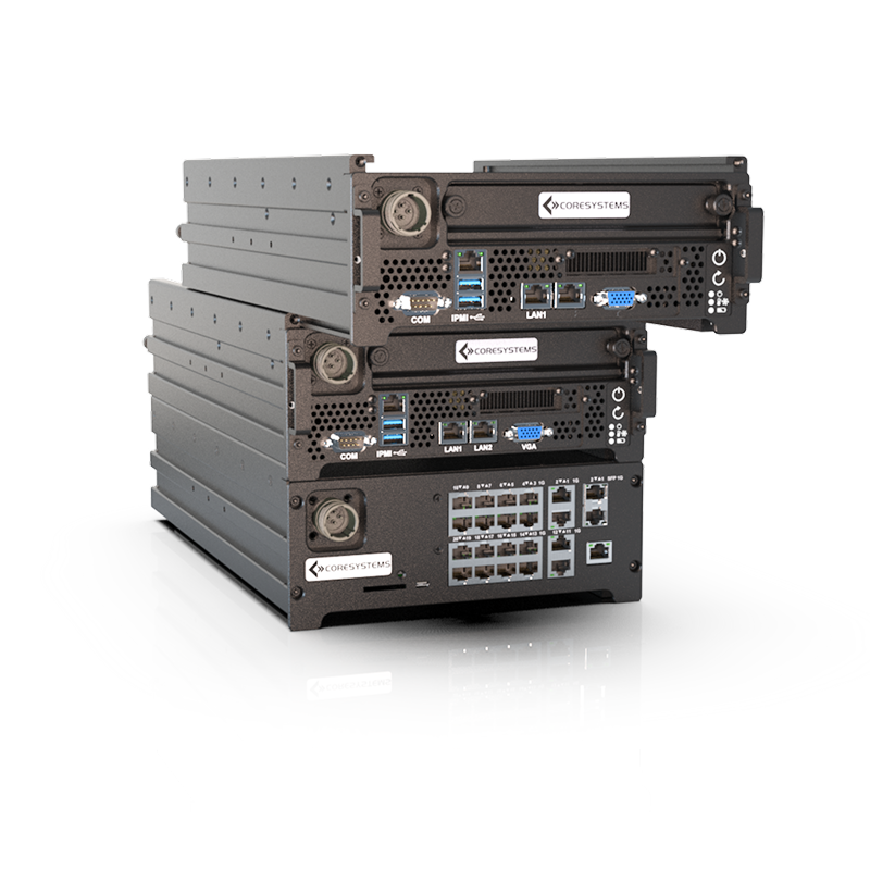 Designed specifically to pair with ATMOS tactical nodes, this switch slides and locks into place on top of the ATMOS chassis, creating a seamless, all-in-one networking and computing setup. This modular configuration simplifies installation in field environments and allows for compact, high-performance deployment in edge operations.