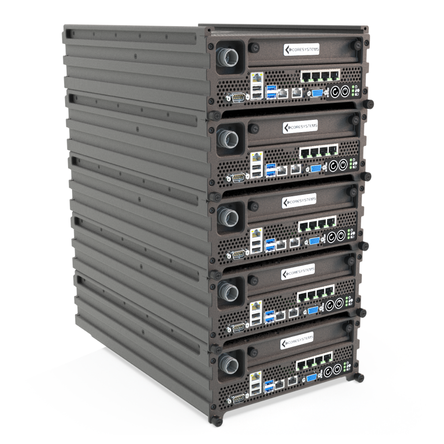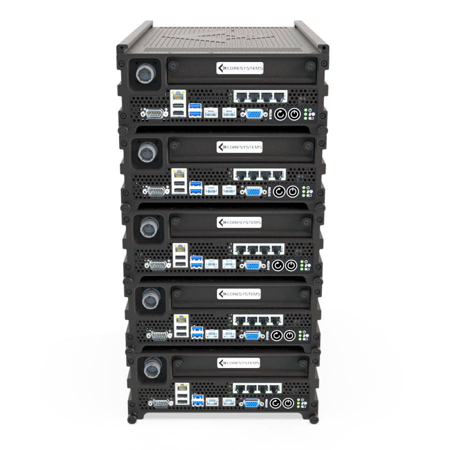 The Rugged ATMOS Full-Stack server is a powerful, stackable solution featuring five independent nodes, each equipped with the latest Intel® Xeon® scalable CPU. This five-node configuration delivers exceptional performance and flexibility, functioning as a unified system through the stackable ATMOS Chassis Rail System. Each node includes an onboard UPS battery backup, ensuring uninterrupted C2 on-the-move operations.